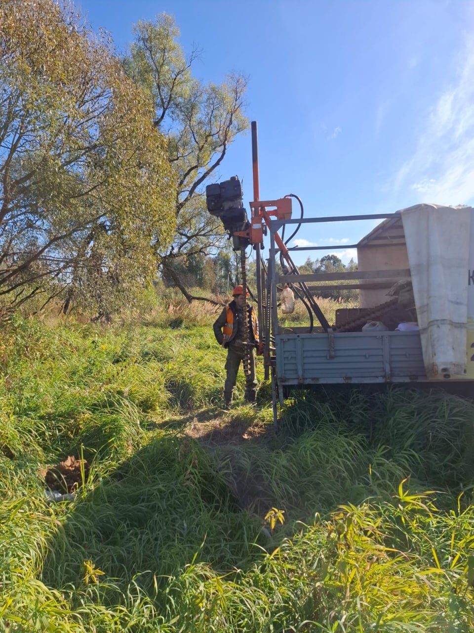 В выбранный день на ваш участок приедет команда из двух человек (геолог-буровик и его помощник) на буровой установке.